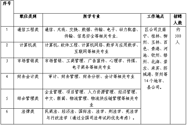 地市 | 通信工程类 | 计算机类 | 市场营销类 | 财务会计类 | 综合管理类 | 法律类 |