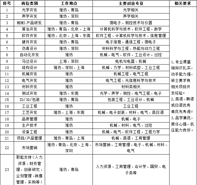 歌尔2018届校园招聘岗位