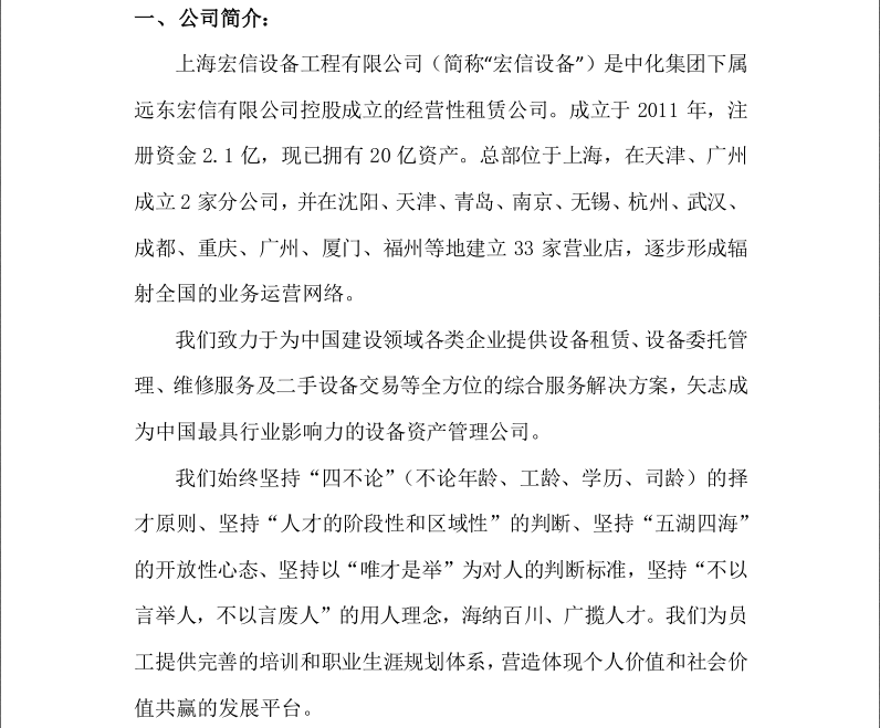 上海宏信设备工程有限公司2016年校园招聘宣讲会